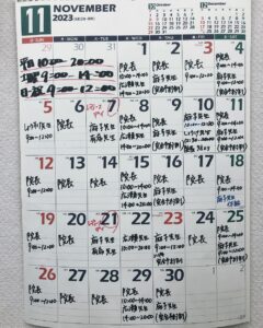ことは鍼灸整骨院、11月の施術予定が決定いたしました!